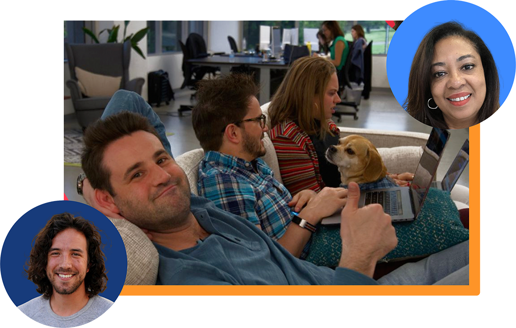 We are a hybrid first work environment and our team can work from home, the office or one of many co-working locations.