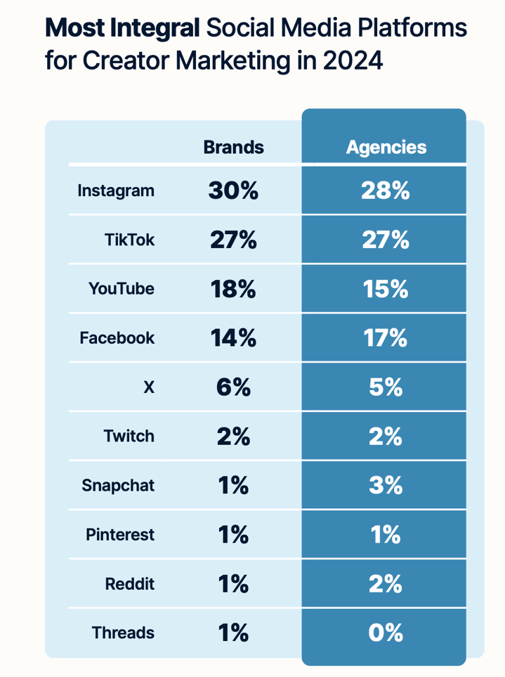 One of the most interesting changes we observed in this year’s report was a shift in the social media platforms favored by both brands and creators.